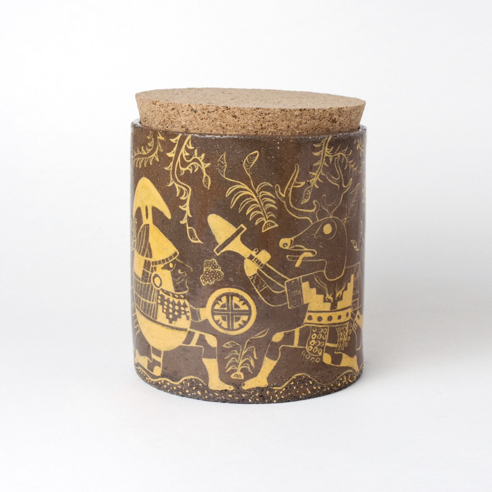 Керамический сосуд с ацтекской традиционной росписью "Битва человека - оленя с человеком-бобом"