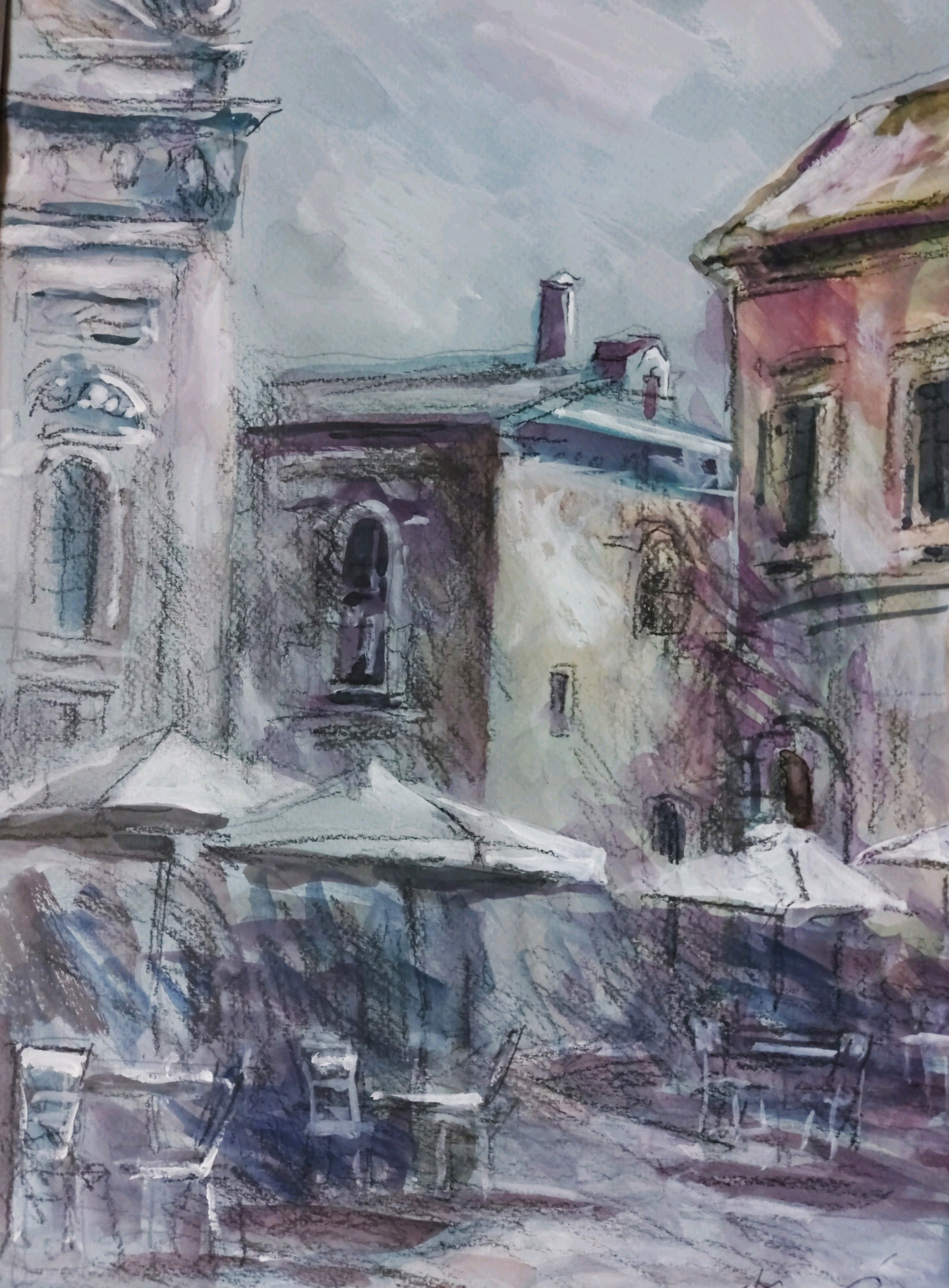 • Техника: бумага, акварель, масляная пастель