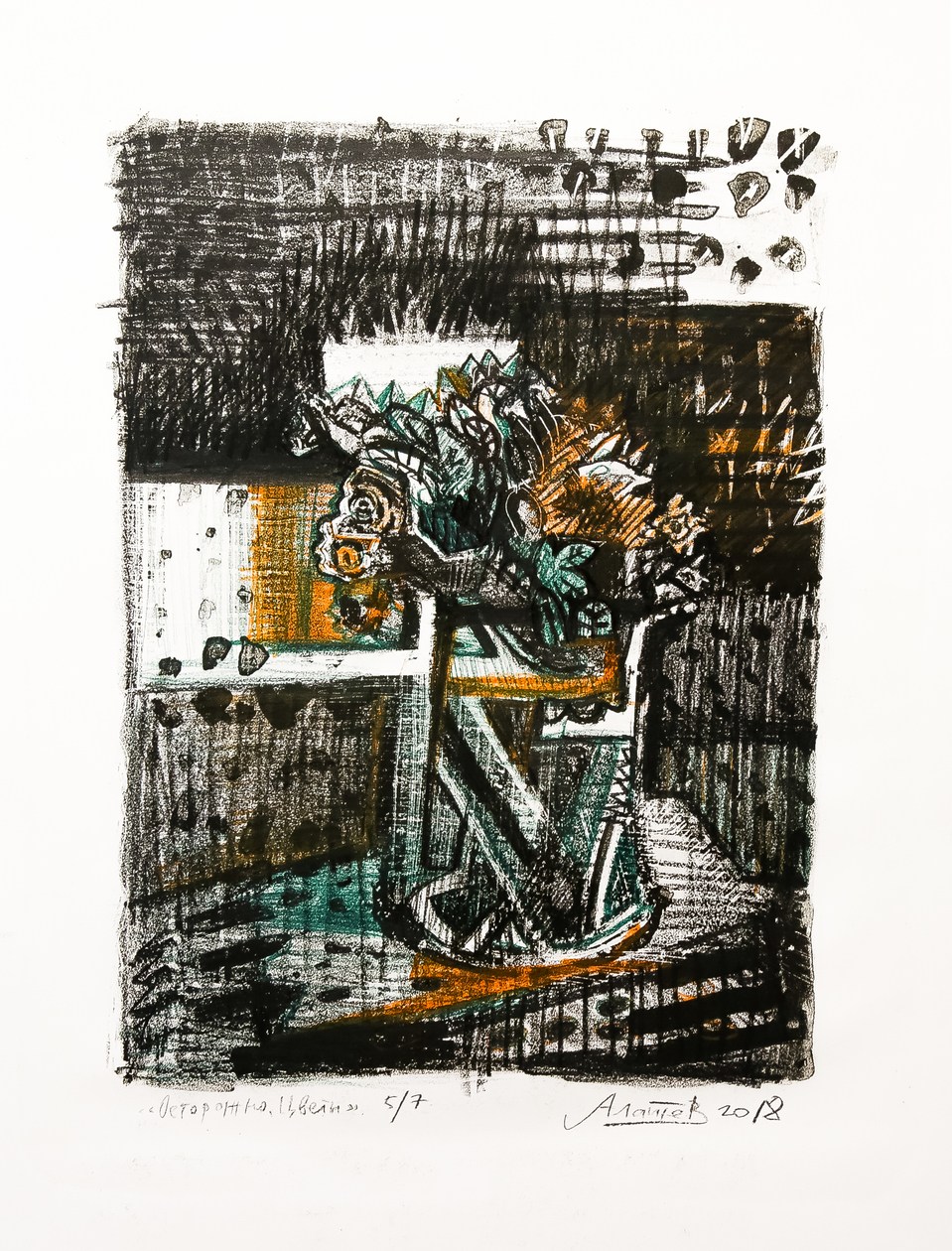 «Осторожно, цветы». Литография, цветные карандаши. 50х70см, 2018