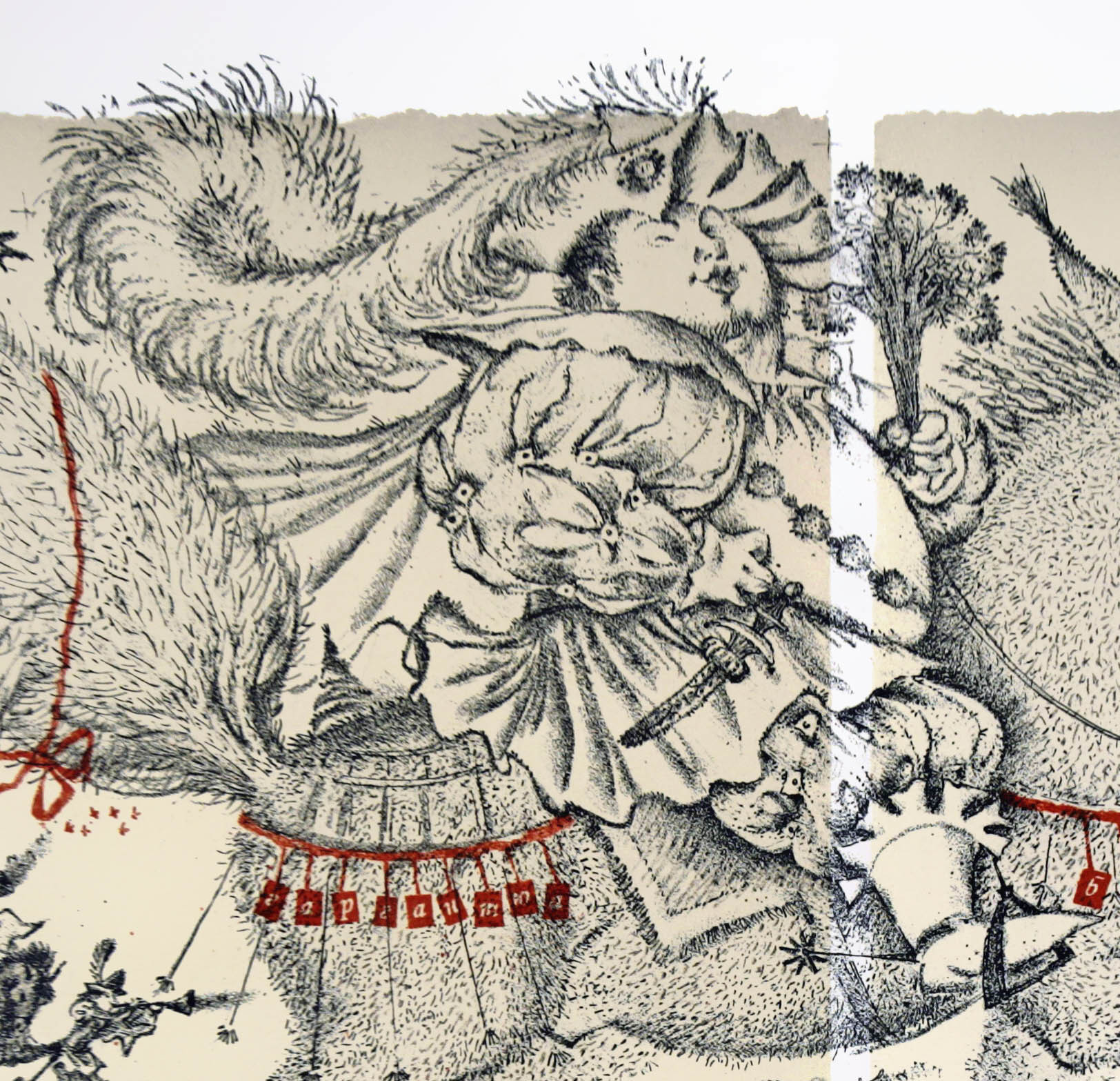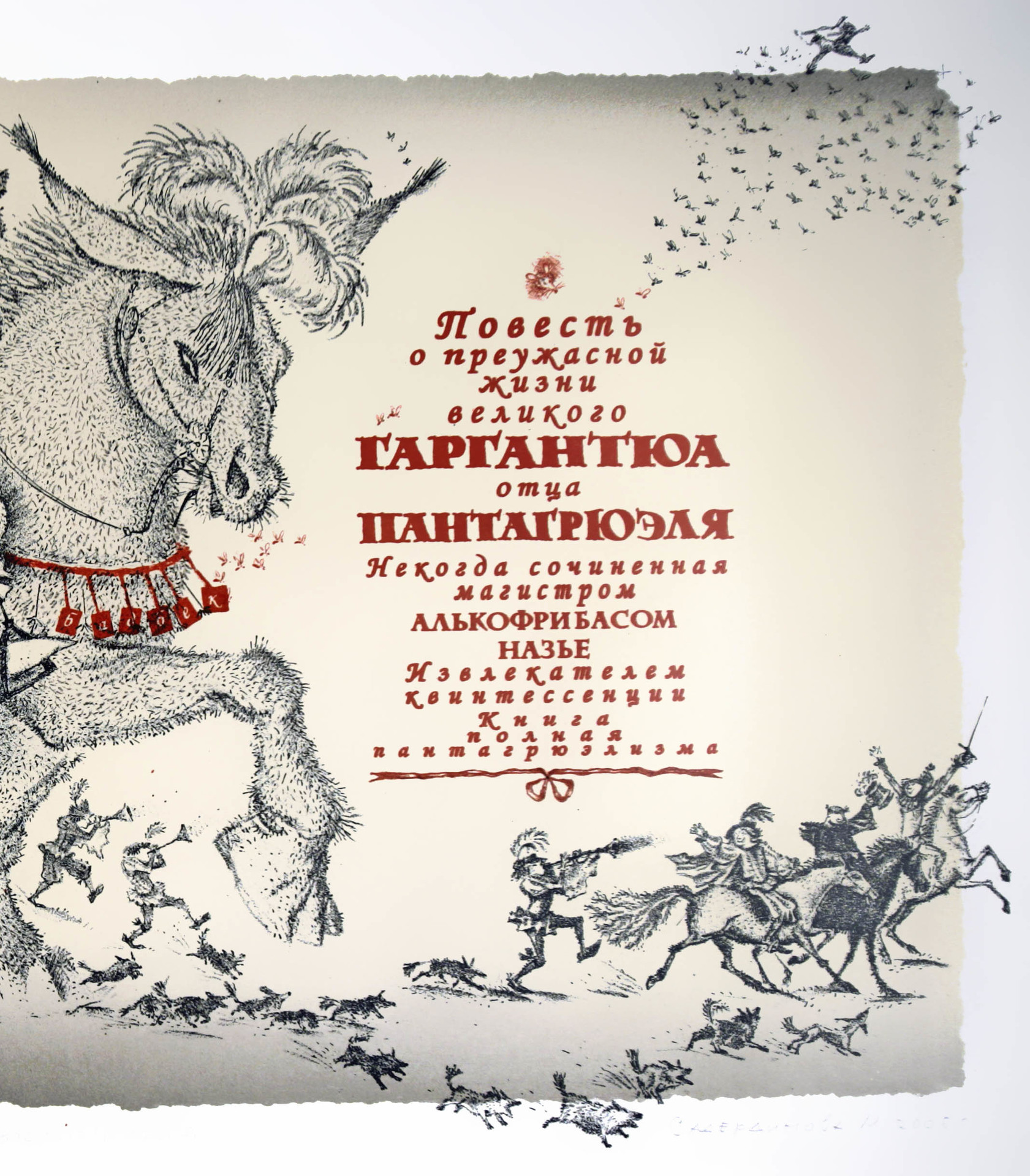 работа входит в серию иллюстраций для романа Ф.Рабле " Гаргантюа и Пантагрюэль". Серия состоит из 7 листов-разворотов, включая обложку.