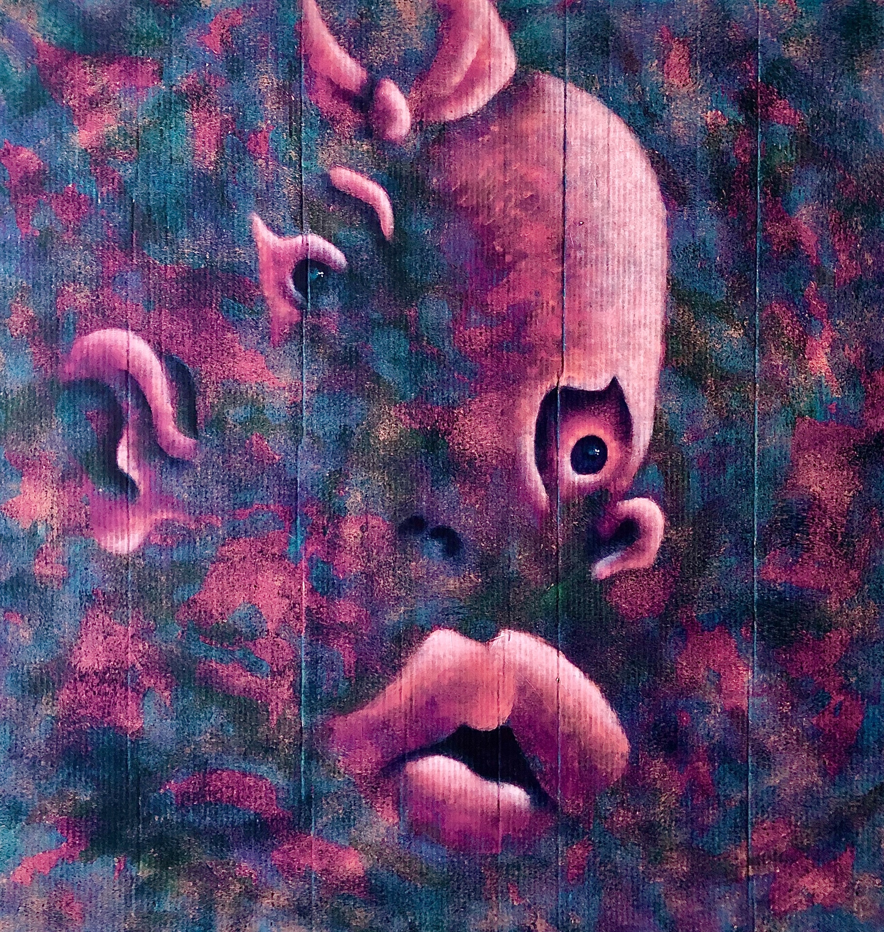 Картина “2102192023” Акрил, гофрокартон 123х128см, 2019 I painted this picture in the author's unique technique. I didn't use the preparatory sketches. This image was born in the process. Painting “2102192023” 2019 Acrylic on cardboar 123x128cm