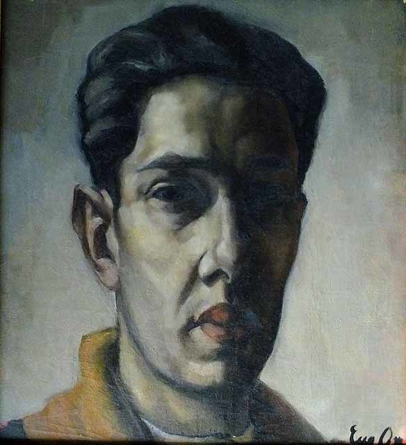 Первый из сохранившихся автопортретов Евгения Окса, созданный в начале его художественной карьеры. Сведения о художнике: Окс Евгений Борисович, (1899, С-Пб -1968, Москва), художник, поэт, литератор 1920-х - 1960-х гг. Родился и учился в Санкт-Петербурге, в 1918-1919 гг жил и продолжил учебу в Одессе, в 1921 г. жил и работал в Кронштадте, с 1922 г и до конца жизни - в Москве. Ученик М.Добужинского, В.Яковлева, В.Шухаева, Бершадского. Участвовал в выставке группы НОЖ в 1924 г., на рубеже 20-х - 30-х гг. член и профорг АХРР, в 1932 г. делегат 1 Съезда художников СССР. Участник Гражданской (боец РОСТА), очевидец (участник?) Кронштадтского мятежа 1921 г., Финской и Великой Отечественной войн (там и там боец отдела изопропаганды Политуправления РККА), участник обороны Москвы в 1941-42 гг.. Активно выставлялся по 1939 г., затем был мобилизован в армию, демобилизован по болезни в 1943. В художественную жизнь вернулся в 1944 г., сдавал работы в фонд РОСИЗО, судьба многих этих произведений неизвестна. Многие годы работал художником-оформителем различных центральных журналов. В свете решений Октябрьского (1964 г.) Пленума ЦК КПСС ему были предоставлены 2 персональные выставки в Москве (1964 и 1965 г.). Умер в Москве осенью 1968 г. В творческом наследии Евгения Окса - не менее 3-5 выдающихся работ-символов своего времени ("Новый 1932-й год" (1932), "Красный трамвай" (1934, находится в ГТГ), "Послевоенная жизнь. В деревне. На огородах" (2 больших картины, 1947, частные коллекции), "Дорога в Хорошеве" (эскиз пророческой силы, 1961, частная коллекция). Из ранних работ высокого уровня достигают "Автопортрет на красном фоне" (1924, частная коллекция), "Зима. Москва, Собачья площадка" (кон.1920-х, частная коллекция), "Арбатские переулки. Розовый забор" (нач.1930-х, частная коллекция). В 1946 - 1947 гг. с группой московских живописцев организовал художественное направление лирических пейзажистов "Московский Барбизон" в д.Измалково, отчетная выставка в конце 1947 г. не состоялась по причине изменения политической ситуации. Основное направление творчества - лирический городской и сельский пейзаж импрессионистского толка, портрет. Художественные работы, кроме сдаваемых в РОИЗО, с конца 1940-х гг. хранились в семье, на выставки и аукционы вернулись в 1990-г., с тех пор активно выставляются на различных площадках и приобретаются коллекционерами. Имя художника Е.Окса ныне полностью возвращено в историю отечественного искусства. В творческом наследии Е.Окса также есть стихотворные произведения 1919 - 1950-х гг., дневники и воспоминания о творческой жизни предреволюционных и революционных лет, об Одесском "Клубе Поэтов", участником которого он был в 1919 г. вместе с Ю.Олешей, Эд.Багрицким, И.Ильфом, Ад.Адалис. Художниками стали дочь, Людмила Евгеньевна Окс (1931-2013) и внучка Ольга Анатольевна Окс.