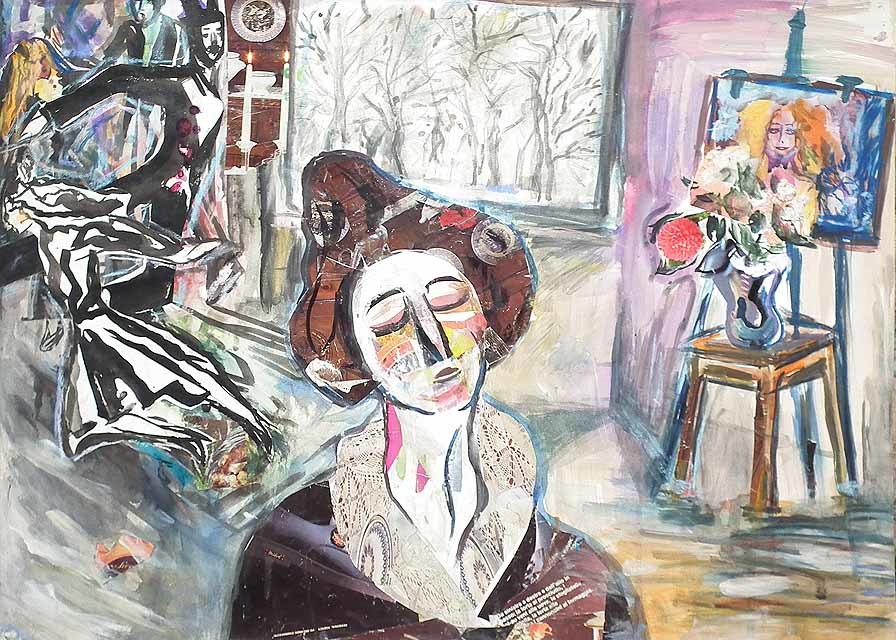 СВЕДЕНИЯ О ХУДОЖНИКЕ: Окс Ольга Анатольевна (род. 1961, Москва), российская художница, видный представитель современного отечественного экспрессивно-авангардного искусства. Дочь Людмилы Евгеньевны Окс (1931-2013) и внучка Евгения Окса (1899-1968). Училась в московской художественной школе, затем несколько лет провела в больнице, ставшей первой темой ее творчества. Работа из этого цикла «Вид из больничного окна. Груз не-200» в 2016 г. экспонировалась на выставке в ГТГ. В 1980-х участвовала в движении хиппи, контактировала с группой художников объединения на Малой Грузинской, затем активно участвовала волонтером в религиозной просветительно-благотворительной организации «Свет и Вера». Неоднократно выставлялась в галерее «На Малой Грузинской», где познакомилась со своим мужем Александром Рогинским, творчество отца которого, художника-нонконформиста 1960-х гг. Михаила Рогинского оказало большое влияние на тематику ее последующих работ. В это же время складывается и стиль-«ноу-хау» ее работ — экспрессивный коллаж из газетных и журнальных вырезок в виде мозаики, дополняемой акварелью, гуашь., в последние годы – маслом. После изменения характера деятельности «Малой Грузинской» выступает как самостоятельный художник, в 1990-х – начале 2000-х гг. — социальной направленности. Наиболее представительны ее циклы «Соц-Арт на газетах» и «Москва — Третий Рим». Ряд работ был включен в программу-турне современного российского искусства по США, организованную А.Глезером. В 2000-х гг. начинается наиболее представительная серия ее работ общим числом более 50-ти — шаржированных портретов кумиров эстрады «Эстрадиада», неоднократно представлявшаяся на различных выставках. Сердцевиной цикла является серия, посвященная певцу Валерию Леонтьеву, ряд работ из которой находится в собрании артиста и украшает его дом в Майами (США). В это же время она участвует в работе «Салона Всех Муз» Анны Коротковой, где выступает с программами разговорного жанра и сценической эксцентрики, а также с шоу дизайнерских моделей подиумной одежды. Работы Ольги Окс охотно приобретают российские и зарубежные коллекционеры, галереи и музеи часто приглашают ее участвовать в выставках, в т.ч. проводят ее персональные выставки.