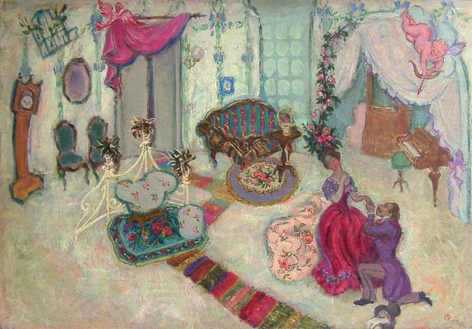 Эскиз декораций к телеспектаклю "Провинциалка" по И. А. Тургеневу: гостинная