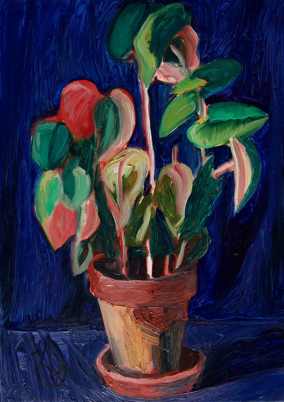 "Цветок в горшке на синем фоне"