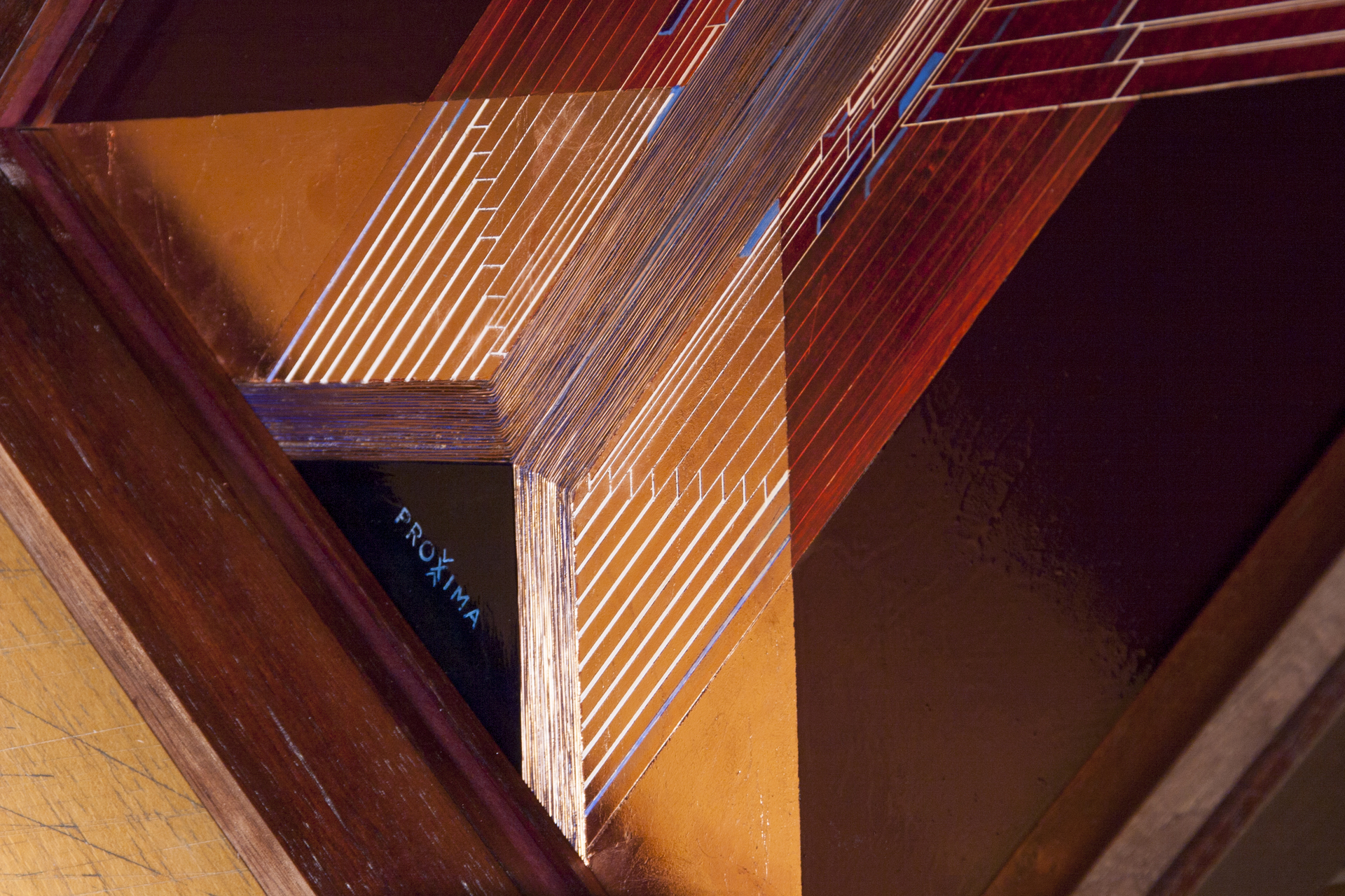 • Техника: Масло, акрил, медная поталь, медная проволока, ширпапир на оргалите. Рама – красное дерево, масло.