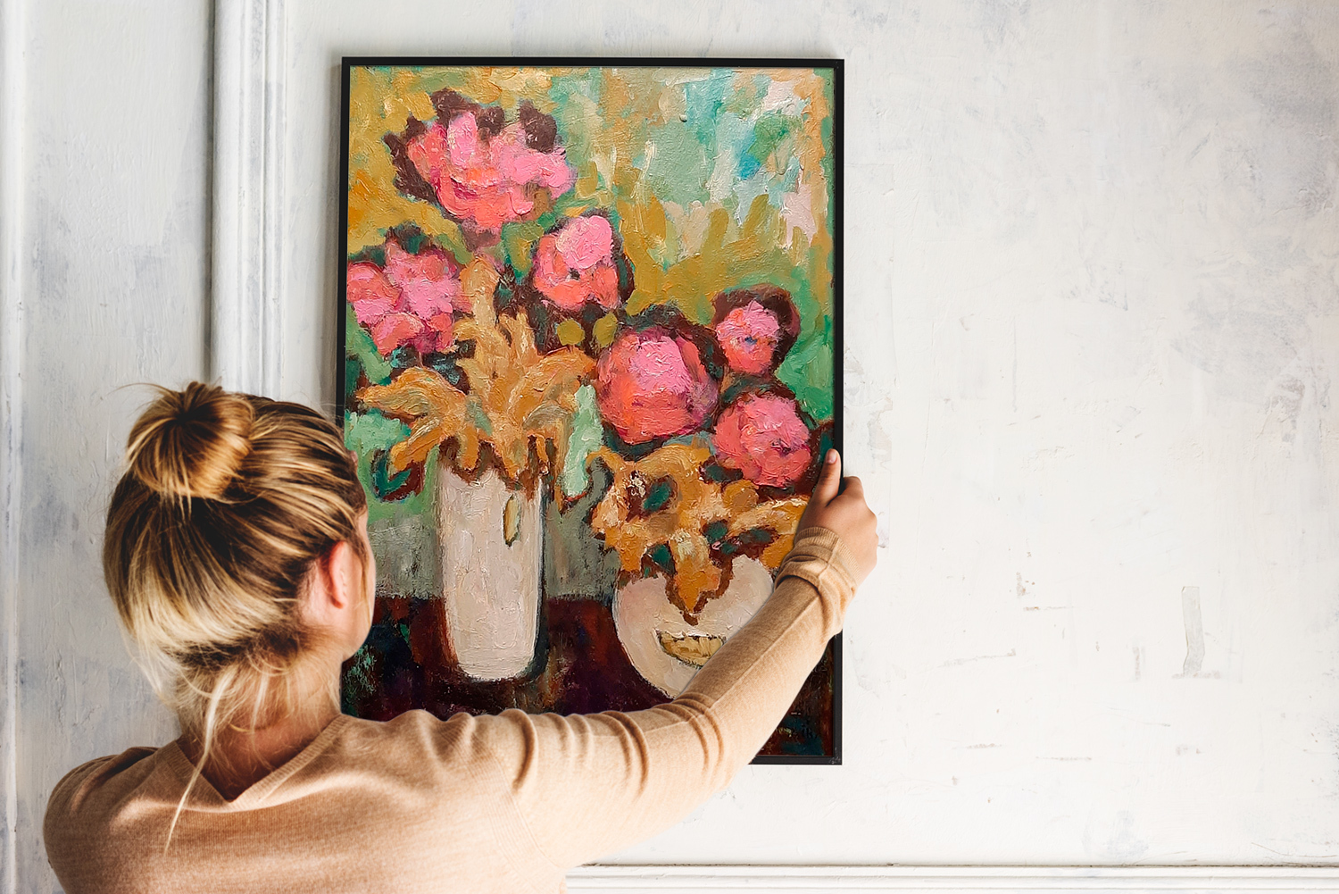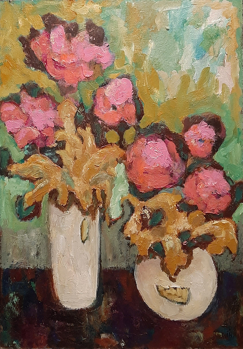 Натюрморт с розовыми цветами