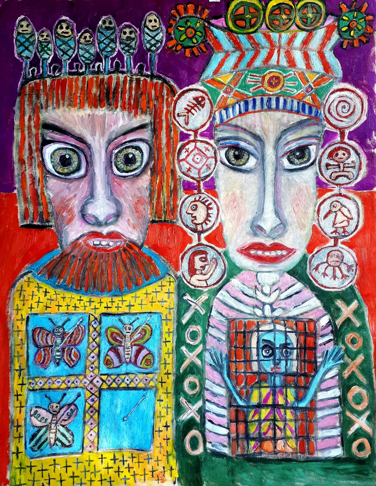 "Свадьба энтомолога и куколки", 1 метр на 80 см. Холст, масло. 2021 г. Таня Туранова, Моск. обл. (расшифровкой или "источником вдохновения" к данной работе можно считать (а числе многого другого) две изначально малосвязные друг с другом вещи - повесть Д. Фаулза "Коллекционер" и личные размышления автора о невозможности "счастливого брака" между самой идеей создавать искусство (бабочкой) и любой социальной и политической властью, идеологией (энтомологом), которая (как не пляши) единственное, что может предложить творцу для его творения - смерть на булавке и место в коллекции.. Как-то так.. :)