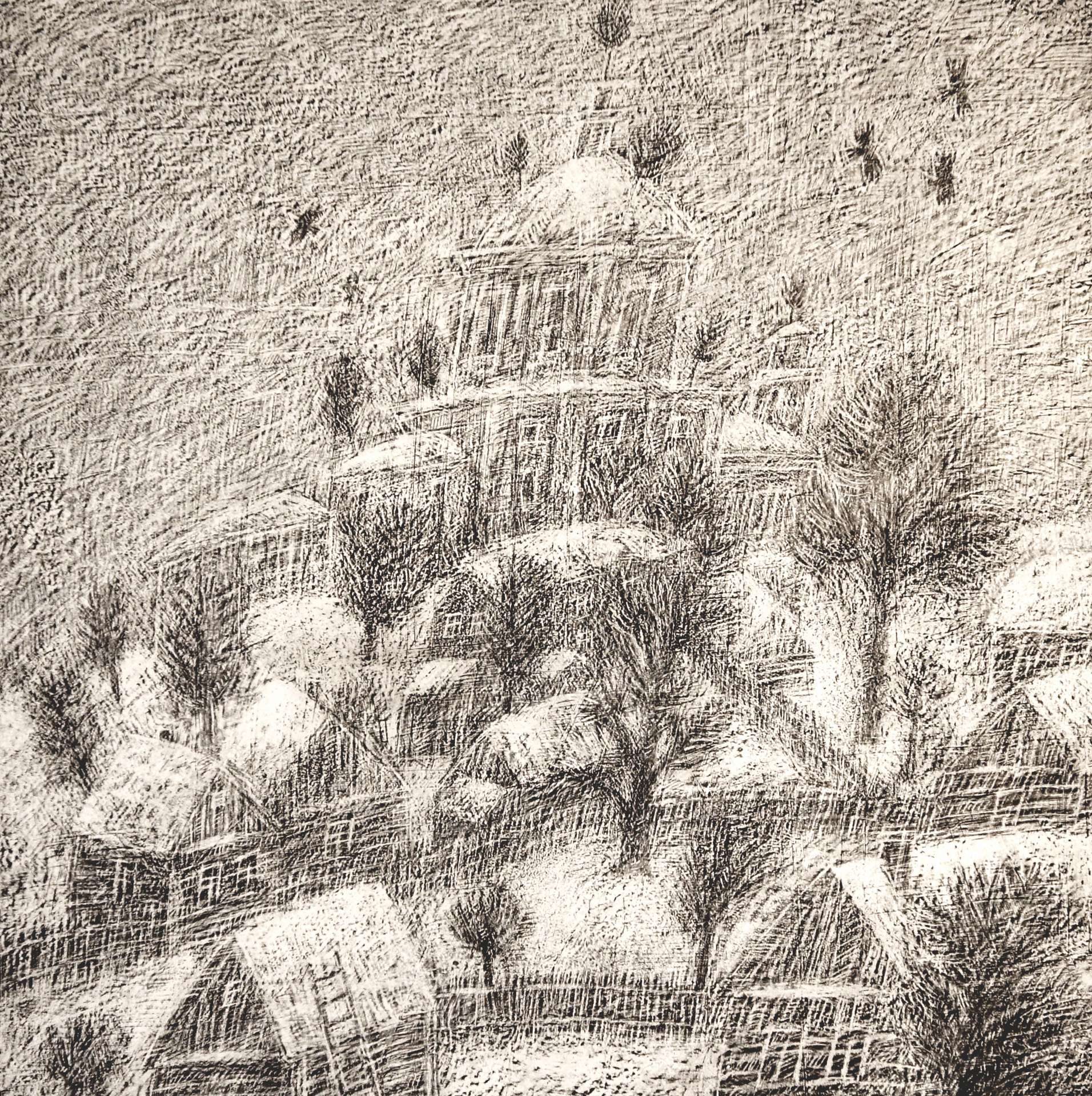 • Техника: ДВП, грунт, черная акварель, скальпель