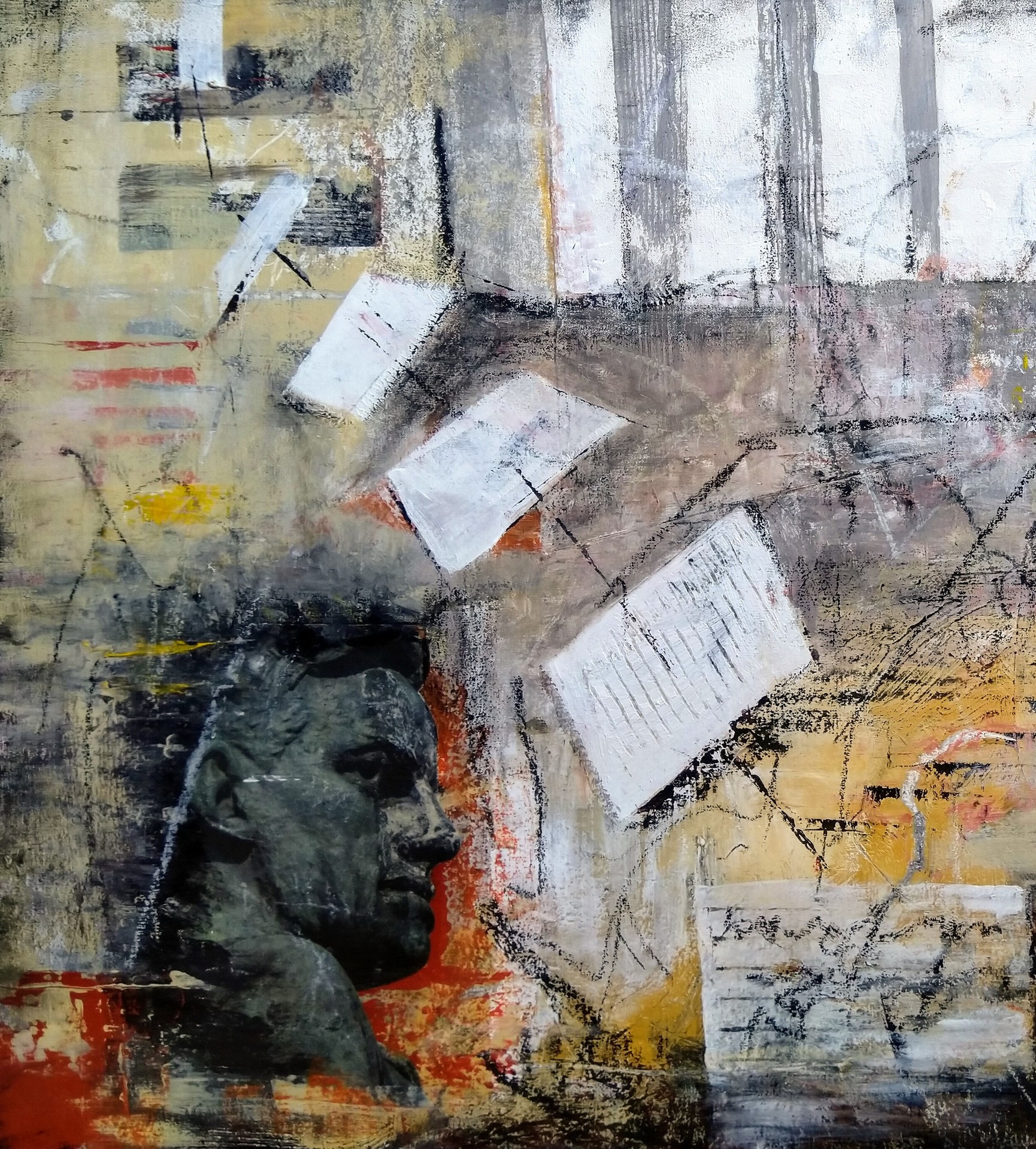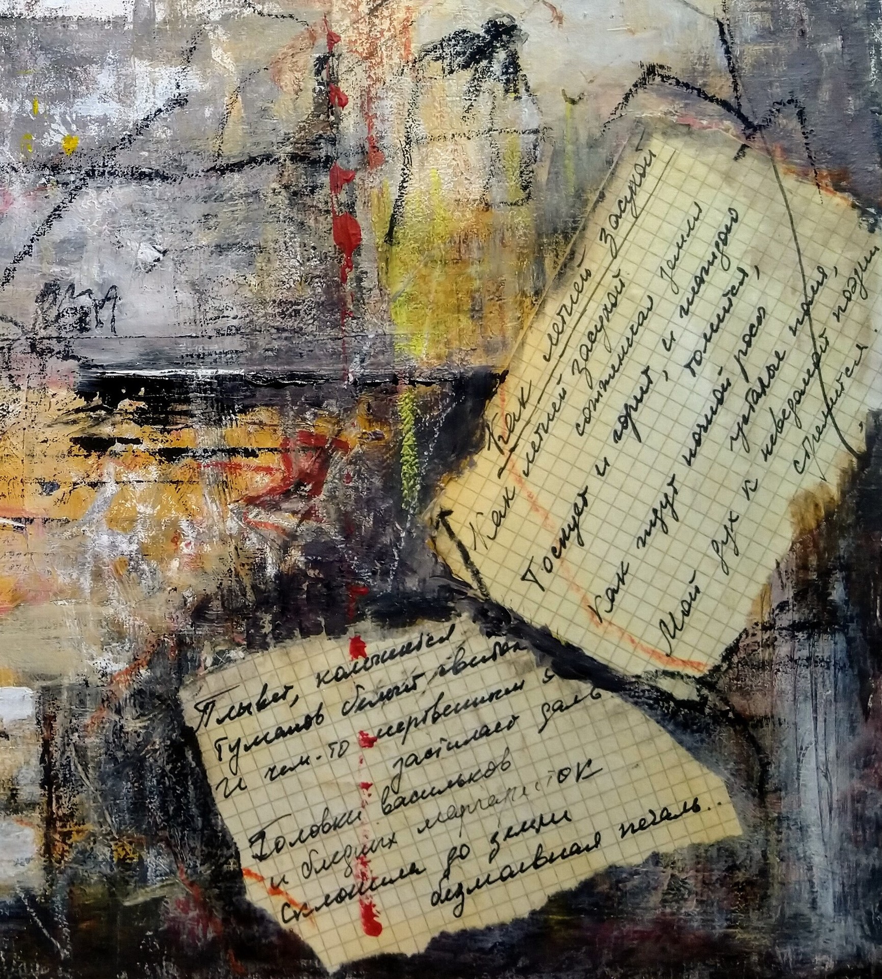 Работа выполнена в смешанных техниках с элементами коллажа на ненатянутом холсте. Эта работа получила 1-й приз в номинации Абстракция на международном конкурсе Vanguard Today в Москве в 2021 Доставка - работа без оформления, в тубусе. По договоренности может быть оформлена.
